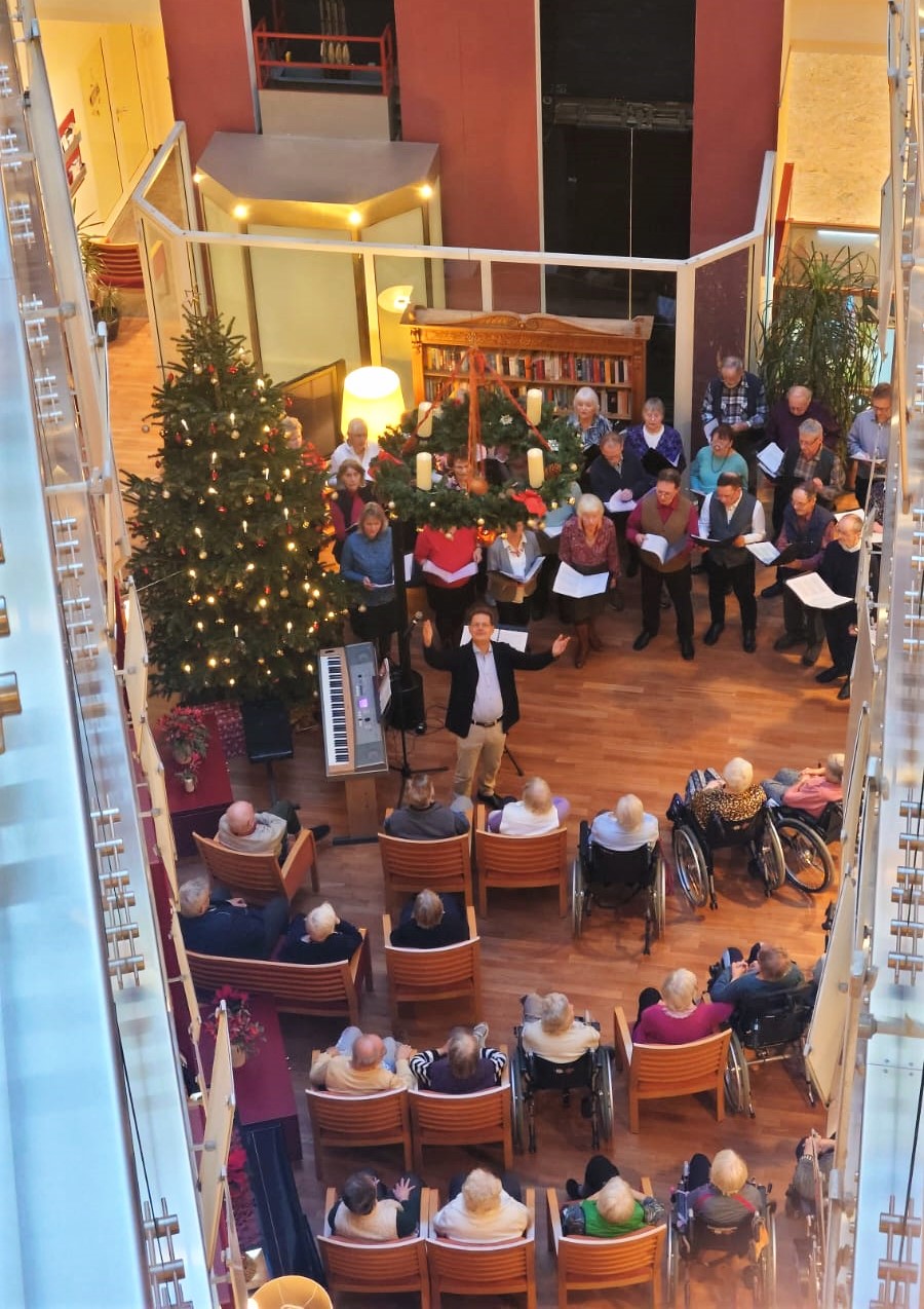 Auch am 4. Advent durften sich die Gäste unseres SenVitals noch über ein besonderes Highlight freuen: Der Chor Cantico Chemnitz verzauberte uns im Atrium mit einem stimmungsvollen Konzert, das noch lange in Erinnerung bleiben wird. Unsere Gäste konnten ganz nach ihren Wünschen dabei sein – einige kamen ins Atrium und erlebten die Musik aus nächster Nähe, andere lauschten entspannt vom Wohnbereich aus. Überall lag eine Atmosphäre der Ruhe, der Freude und der Gemeinschaft in der Luft.