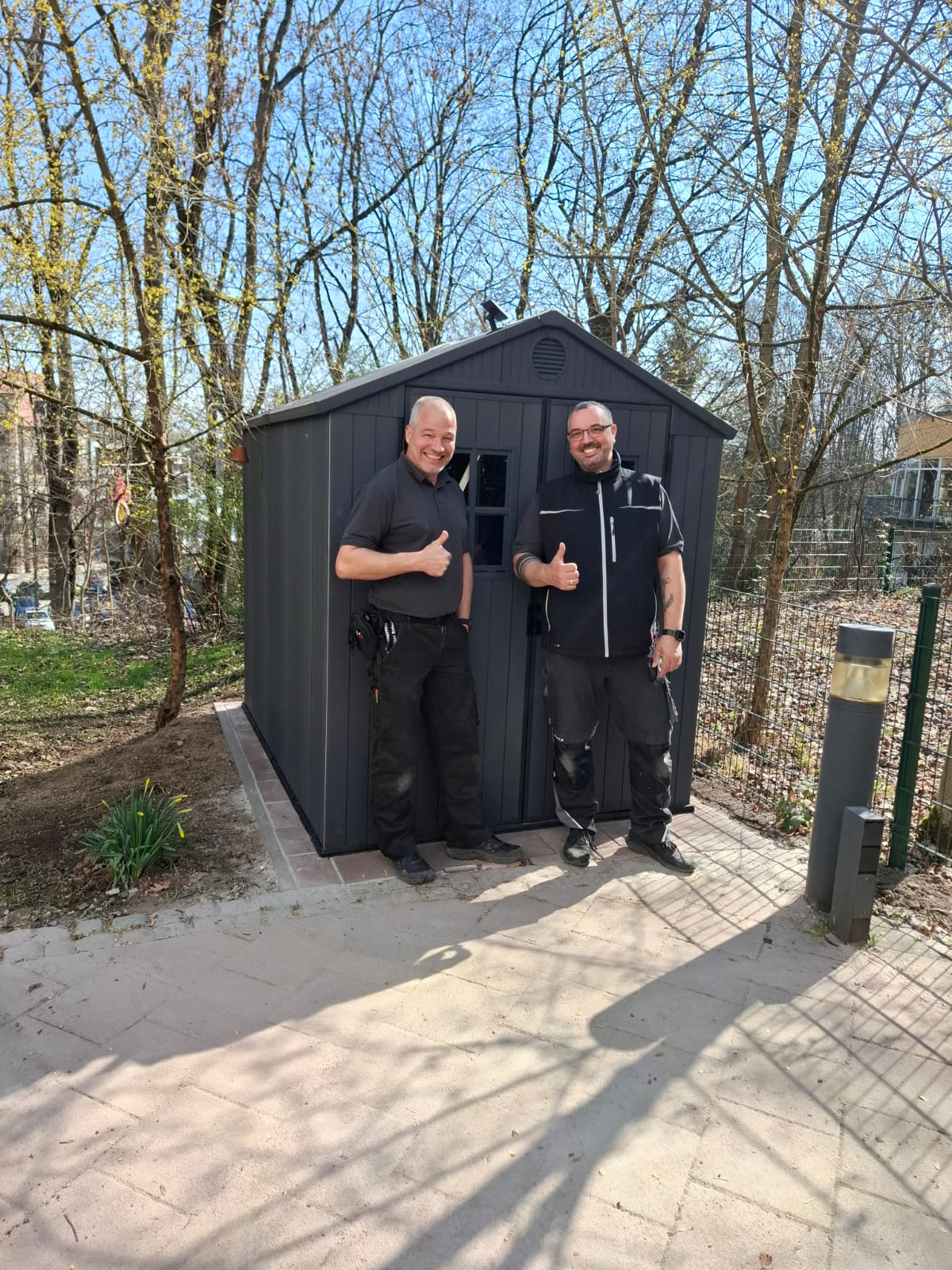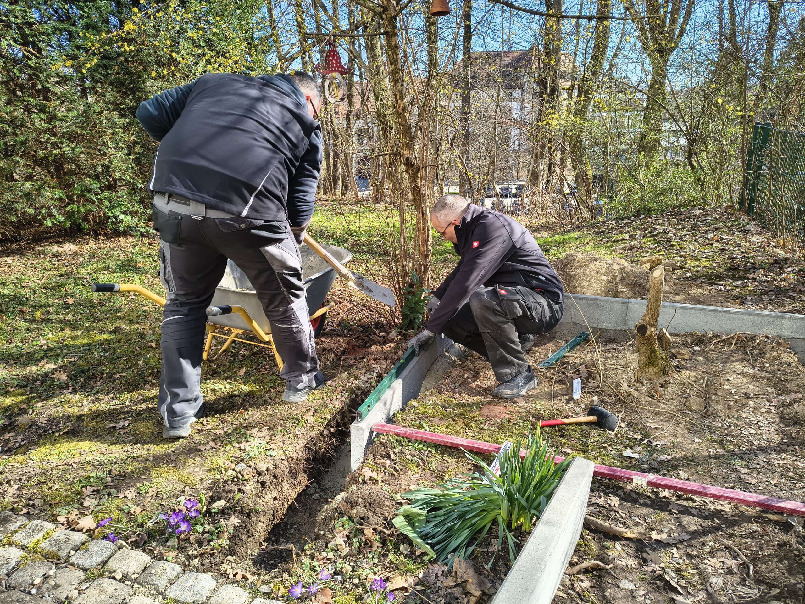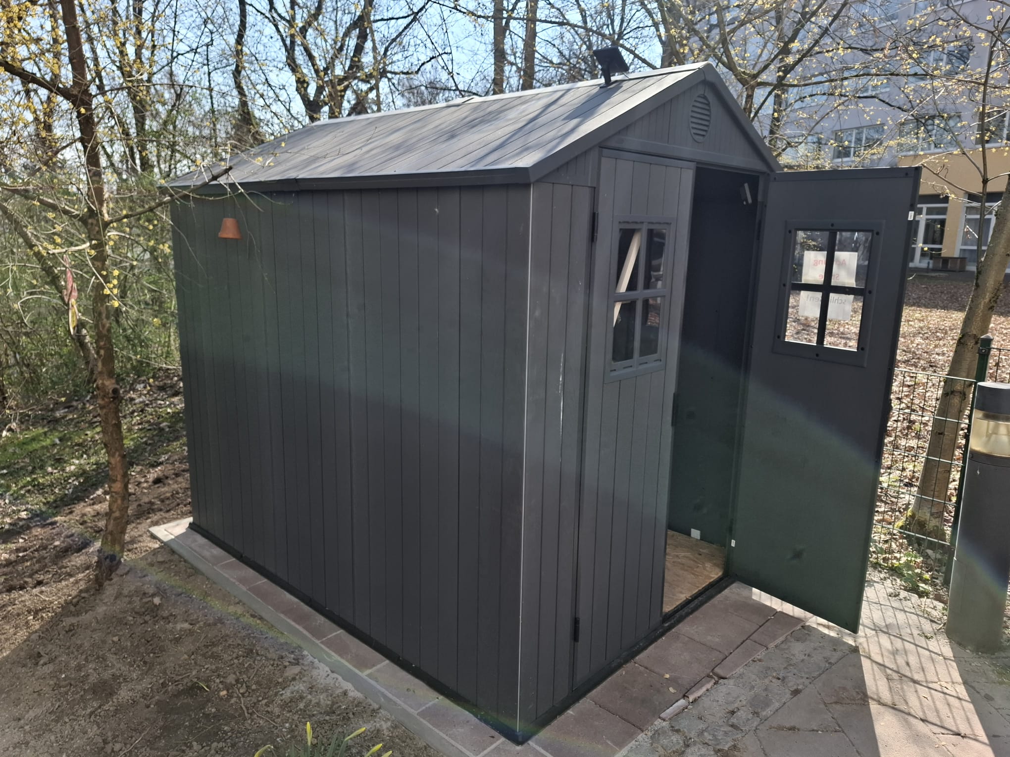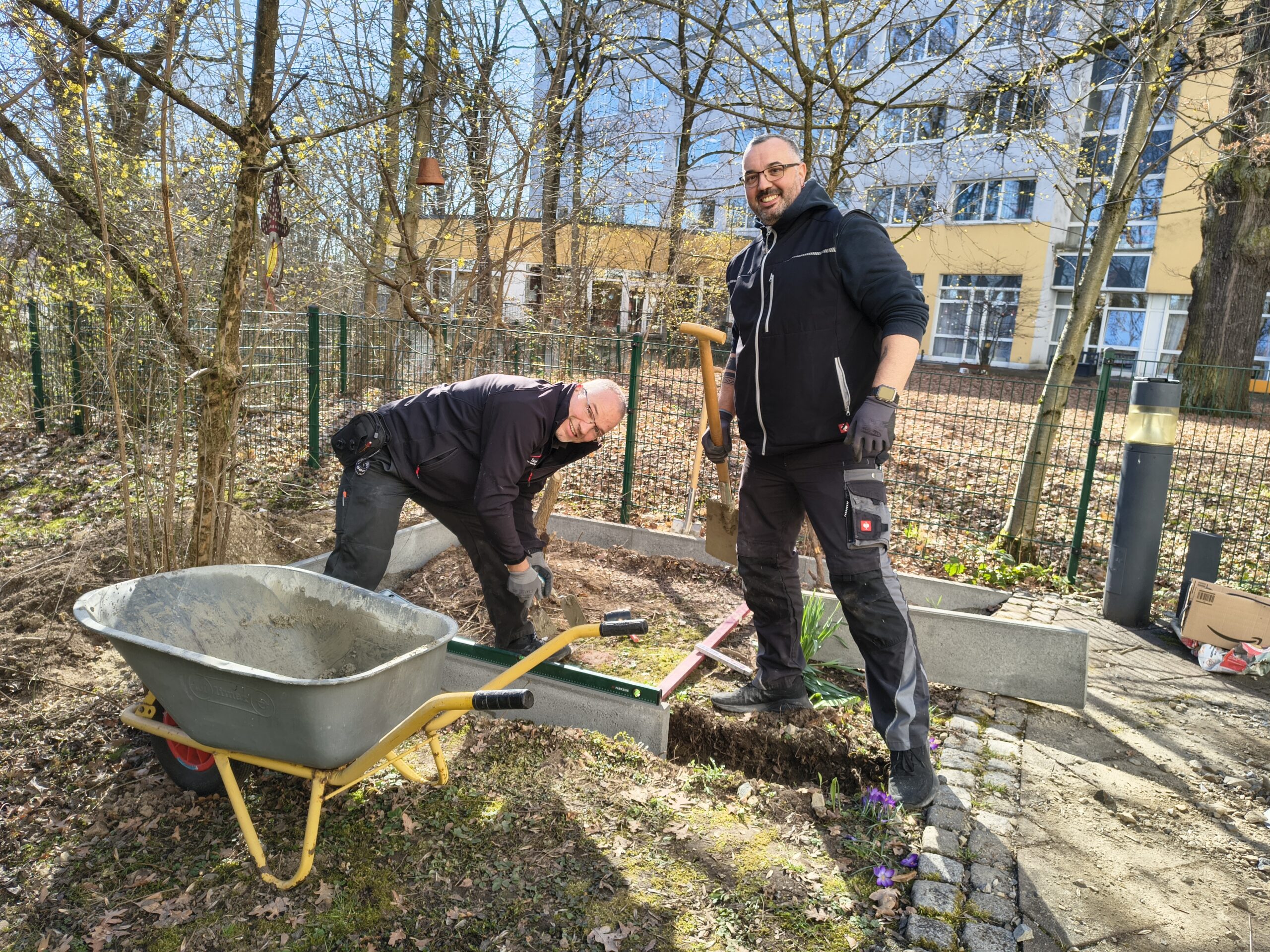 Im vergangenen Jahr erhielt die beliebte Garten-AG unseres SenVitals eine hübsche Gartenhütte – ein praktischer Unterstand für allerlei Gartengeräte, ein Aufbewahrungsort für Sitzauflagen und für all das, was man so für den Aufenthalt im Freien gerne geschützt unterstellen möchte (wir berichteten). Neulich waren die Haustechniker André und Richard wieder mal sehr fleißig am Werkeln und haben ein tolles Plattenfundament für das Häuschen errichtet. Dieses hat nun endlich seinen festen Platz im Residenzgarten, worüber sich alle Mitglieder der Garten-AG richtig freuen.