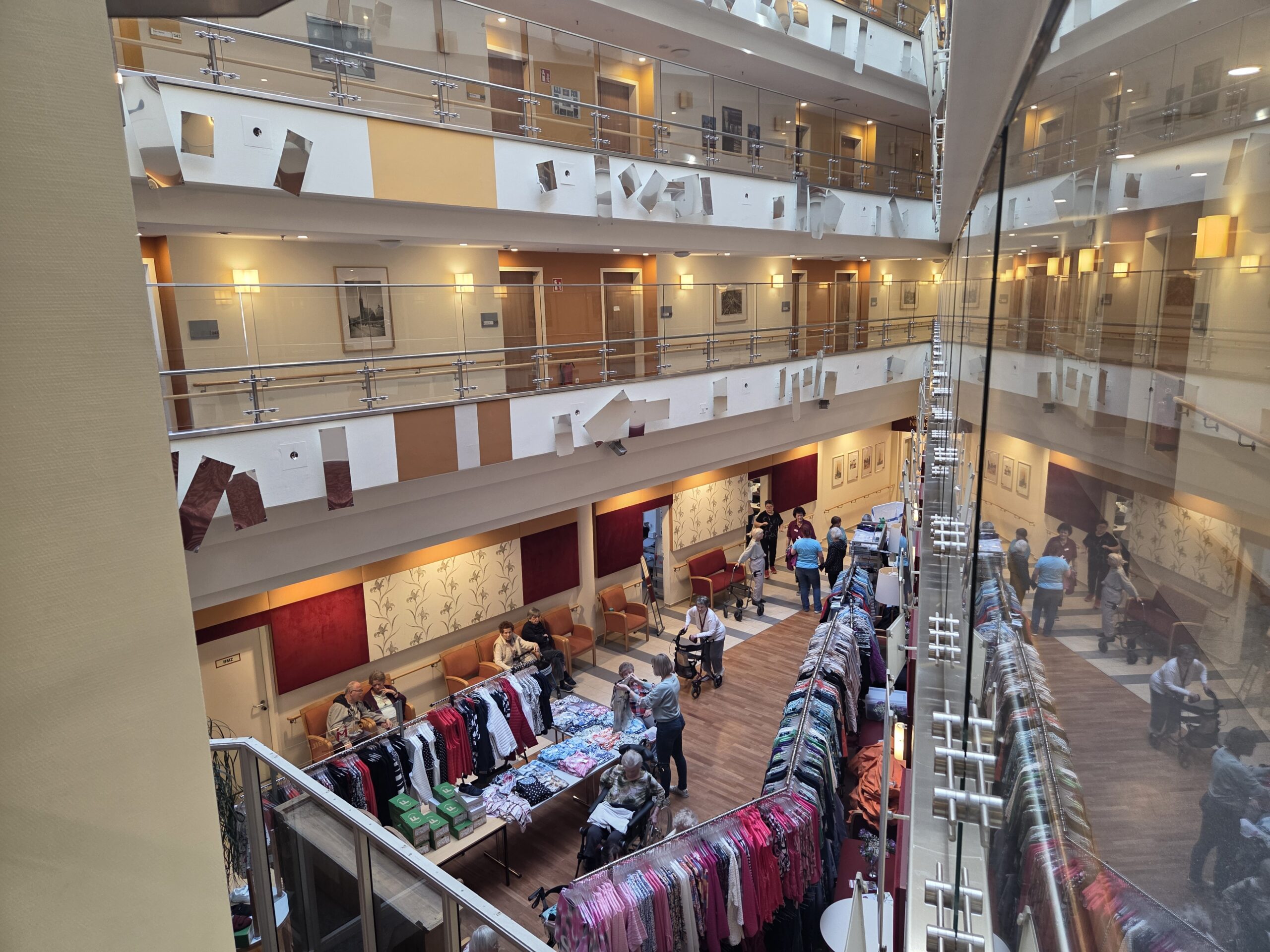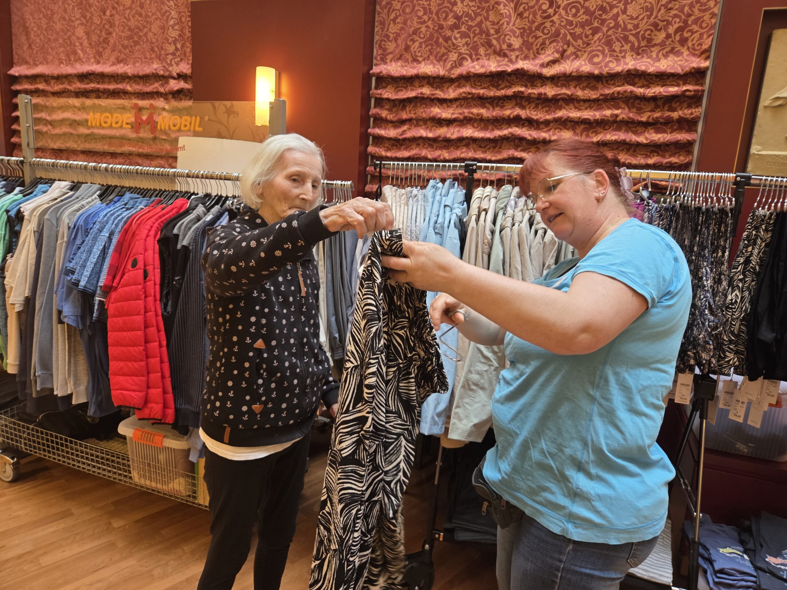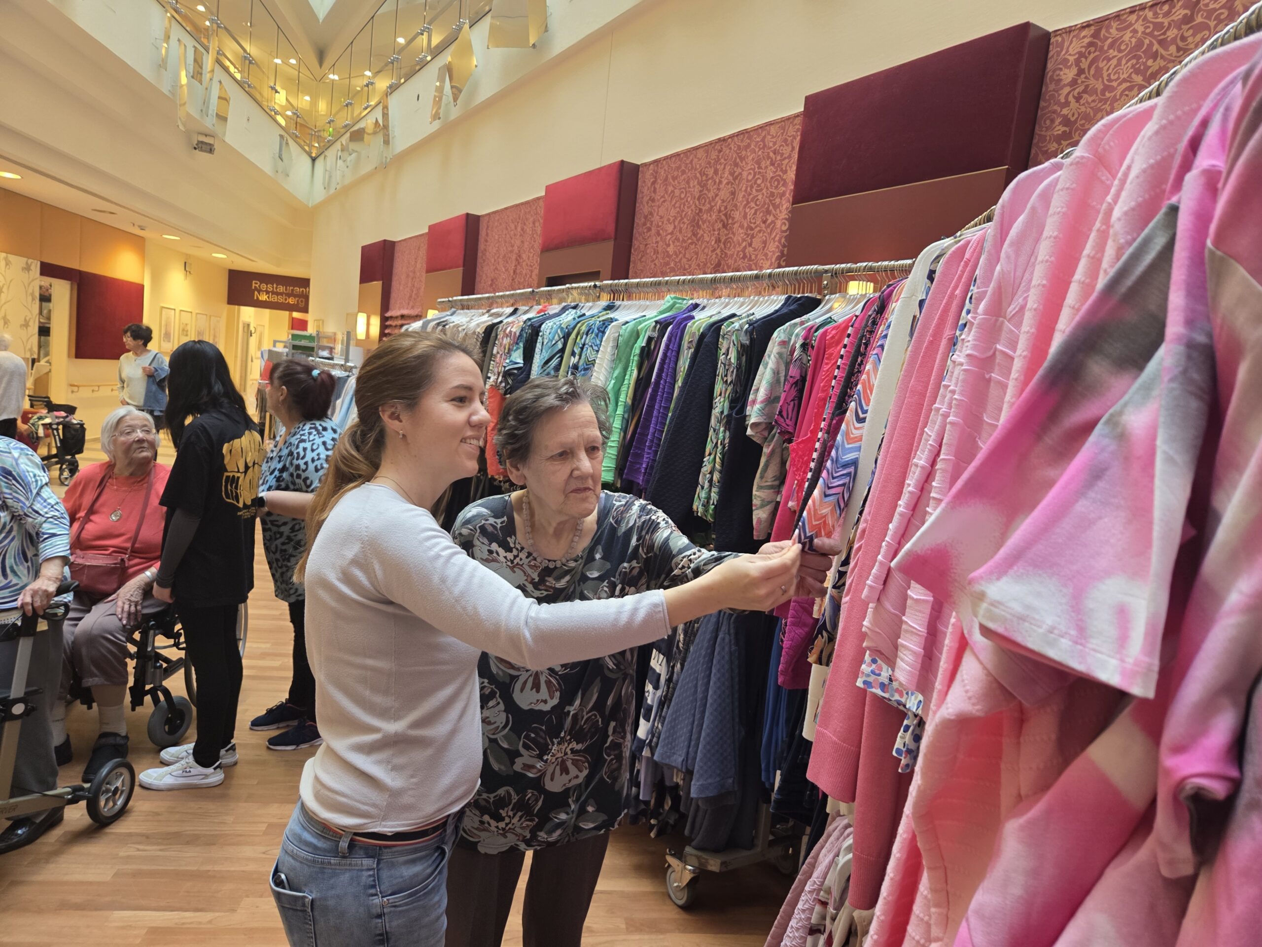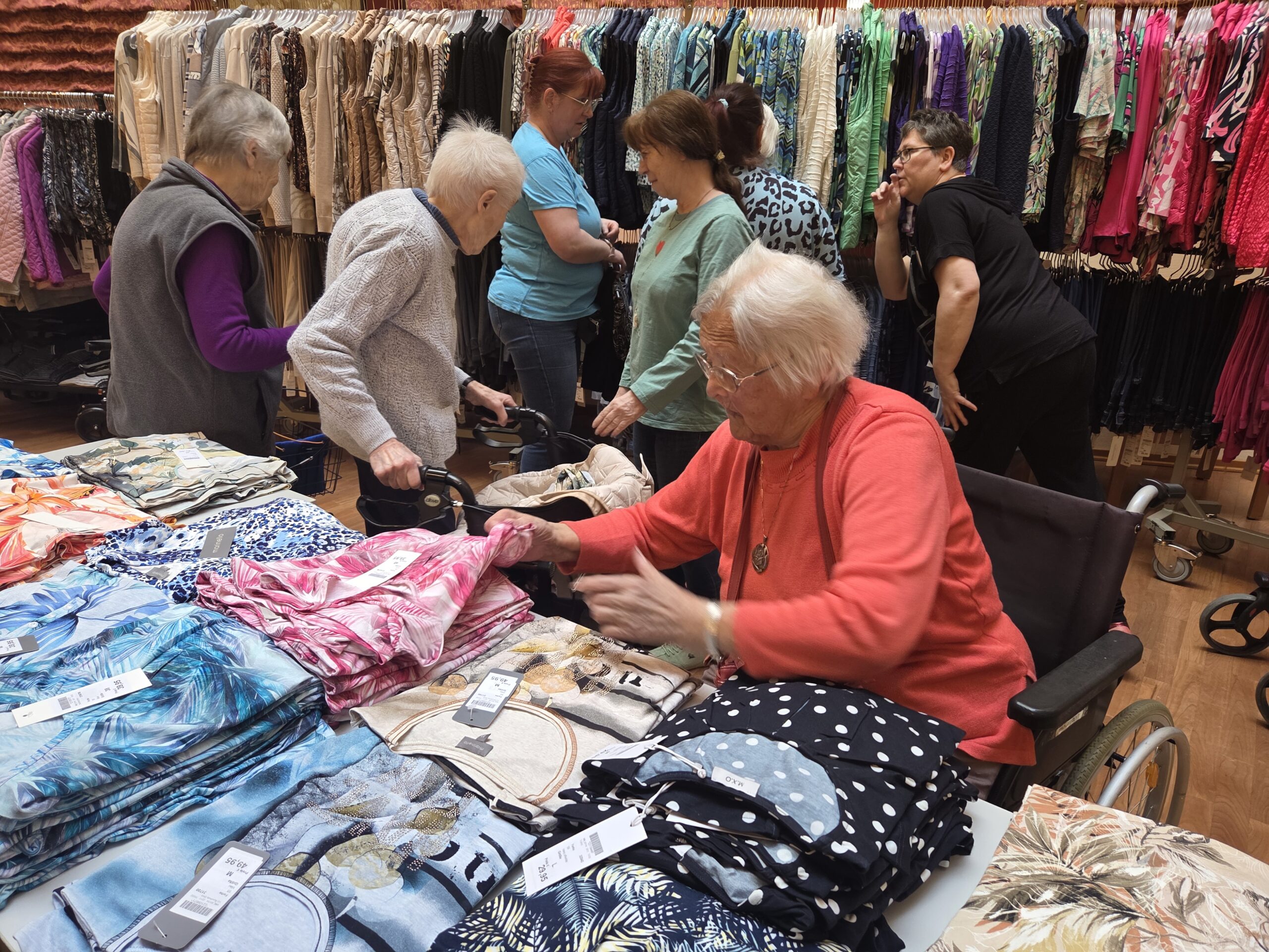 Einkaufsbummel in der Residenz: Zweimal im Jahr haben unsere Gäste in unserem SenVital die Gelegenheit, in den Räumlichkeiten des Seniorenzentrums nach Herzenslust zu stöbern und zu shoppen, wenn es heißt: das „Modemobil“ macht Halt bei uns. In gemütlicher Atmosphäre konnten die Senioren frühlingshafte Mode und schöne Accessoires entdecken, anprobieren und erwerben. Mit viel Freude und Neugier staunten alle über das vielseitige Angebot. Der Besuch des „Modemobil“ bedeutet für unsere Gäste gelebte Selbstbestimmung, Lebensfreude und sich selbst mal etwas gönnen – einfach klasse!