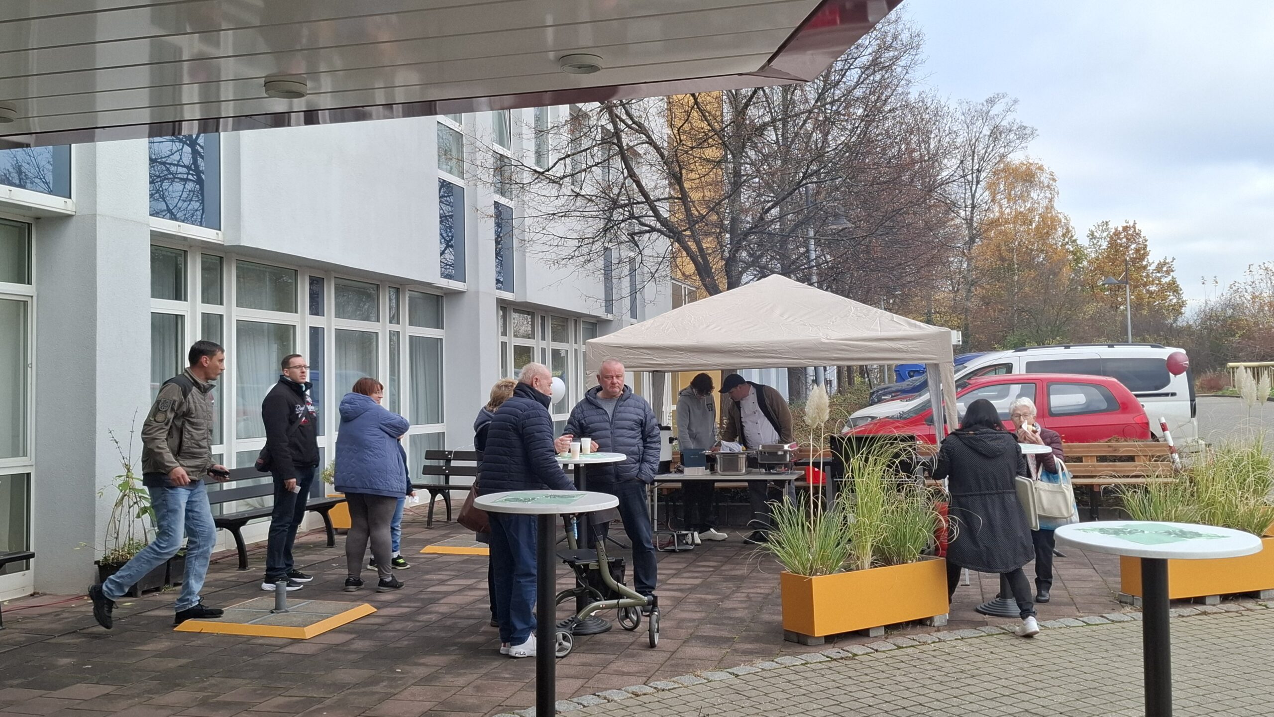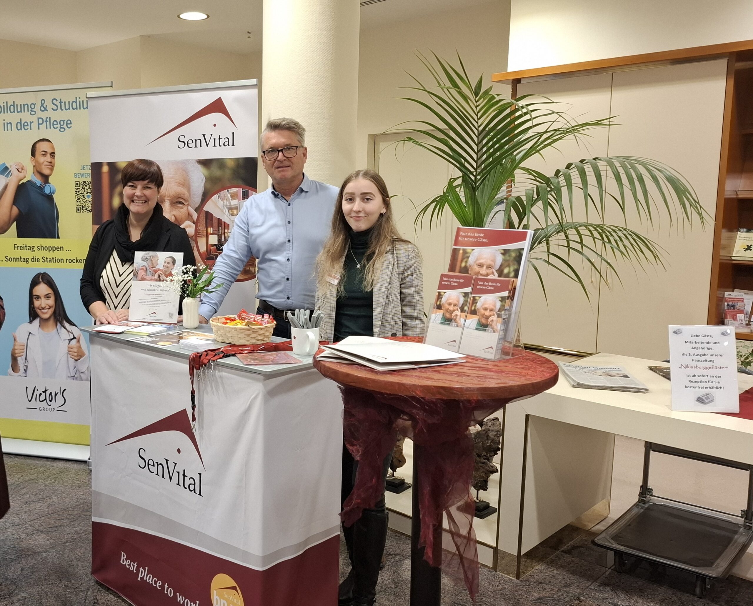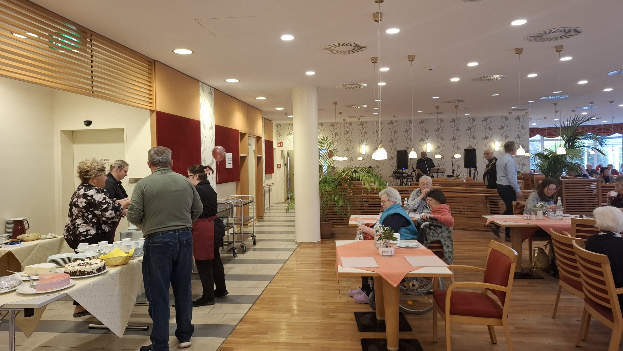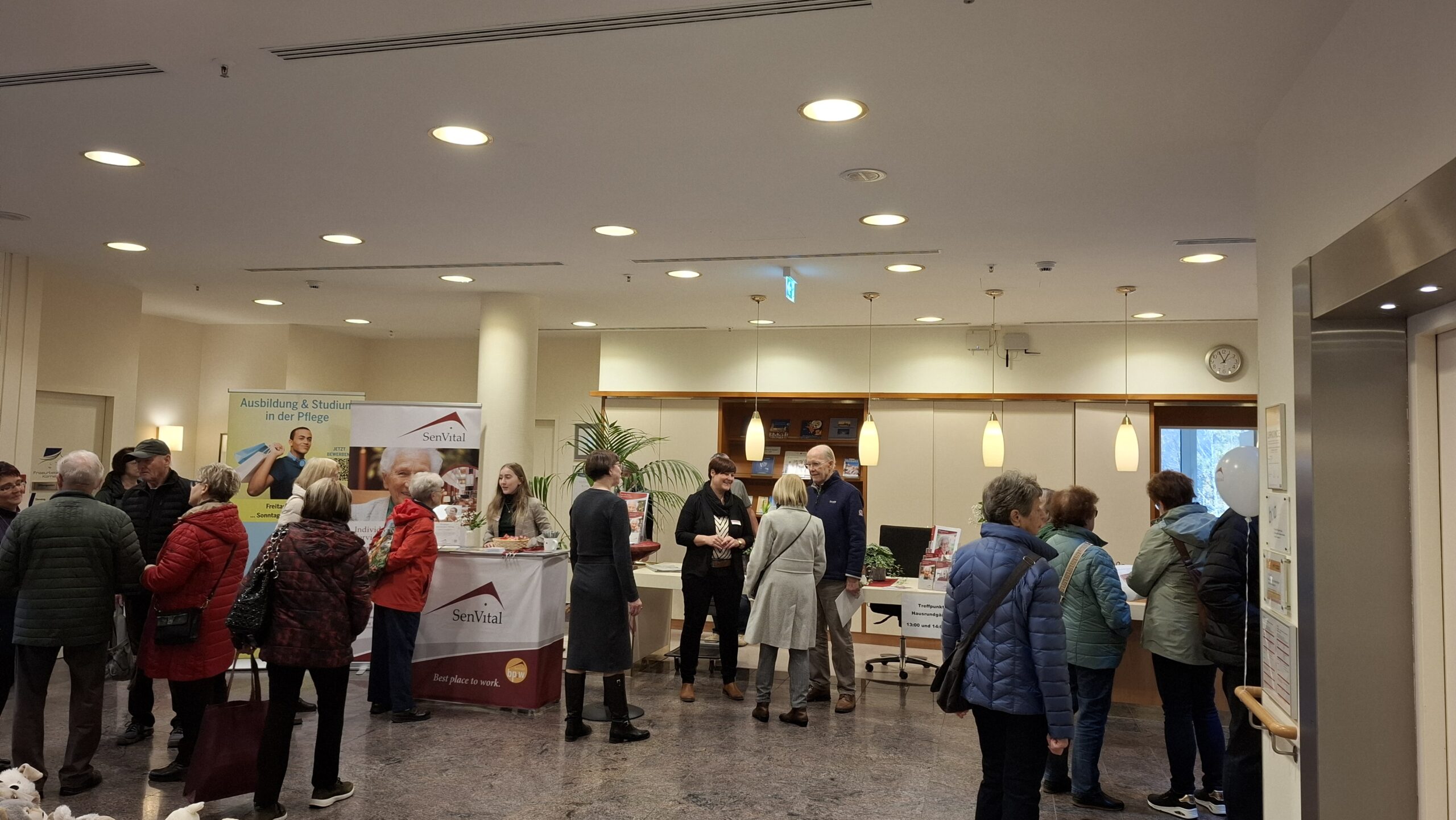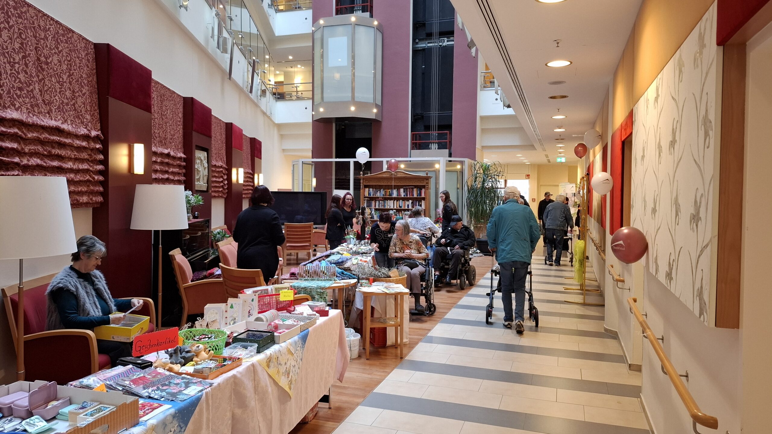 Einmal im Jahr findet in unserem SenVital der „Schau-mal-rein-Tag“ statt. Vergangenen Samstag konnten interessierte Besucher bei Hausrundgängen einen Blick hinter die Kulissen unseres Seniorenzentrums werfen. Es gab spannende Mitmachaktionen, einen informativen Vortrag der Polizeidirektion Chemnitz zum Thema „Im Alter sicher leben“ sowie tolle Verkaufsstände mit Handarbeiten, Geschenkartikeln, Blumen und vielem mehr. Besonders schön war der Auftritt von Franziska und Reinhard Haucke, die mit ihrer Live-Musik während der Kaffeezeit im residenzeigenen Restaurant für tolle Stimmung sorgten. Vor der Residenz konnten Gäste, Angehörige und Besucher bei köstlichem Essen und Getränken sowie herrlichem Spätherbstwetter plaudern und sich austauschen.