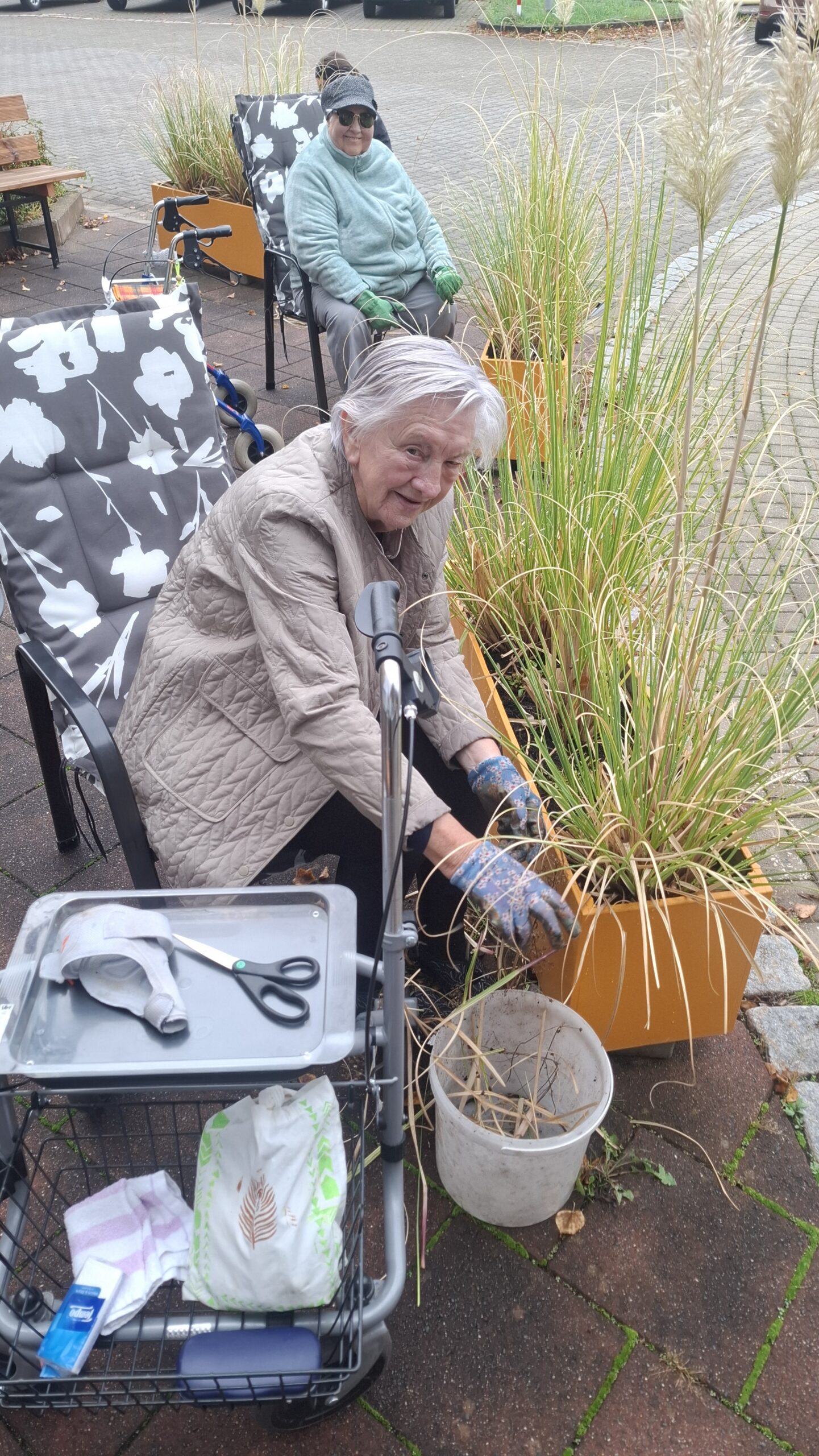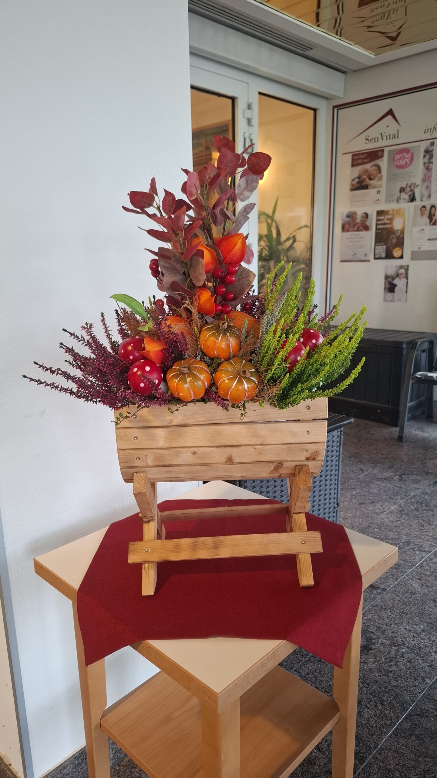 Rot, orange, braun, gelb: Der Herbst ist so eine wunderbar bunte Jahreszeit. Damit auch unser SenVital in den schönen Herbstfarben erstrahlt, war die dortige Gartengruppe wieder mächtig fleißig. Gemeinsam übernahmen die Senioren mit viel Engagement und noch mehr Freude am Gärtnern die komplette Herbstbepflanzung der Residenz. Liebevoll wurden die Beete mit saisonalen Blumen bestückt und auch das Foyer des Hauses mit entsprechender Dekoration geschmückt. Nach getaner Arbeit waren alle sichtlich stolz und glücklich, denn mit den strahlenden Farbtupfern vor und in der Residenz schufen sie einen stimmungsvollen Blickfang für alle, die den schönen Eingangsbereich am Niklasberg betreten.
